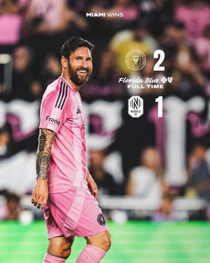 07月13日讯 今日美职联,迈阿密国际主场2-1击败纳什维尔,梅西连续5轮双响,率队取美职联5连胜。