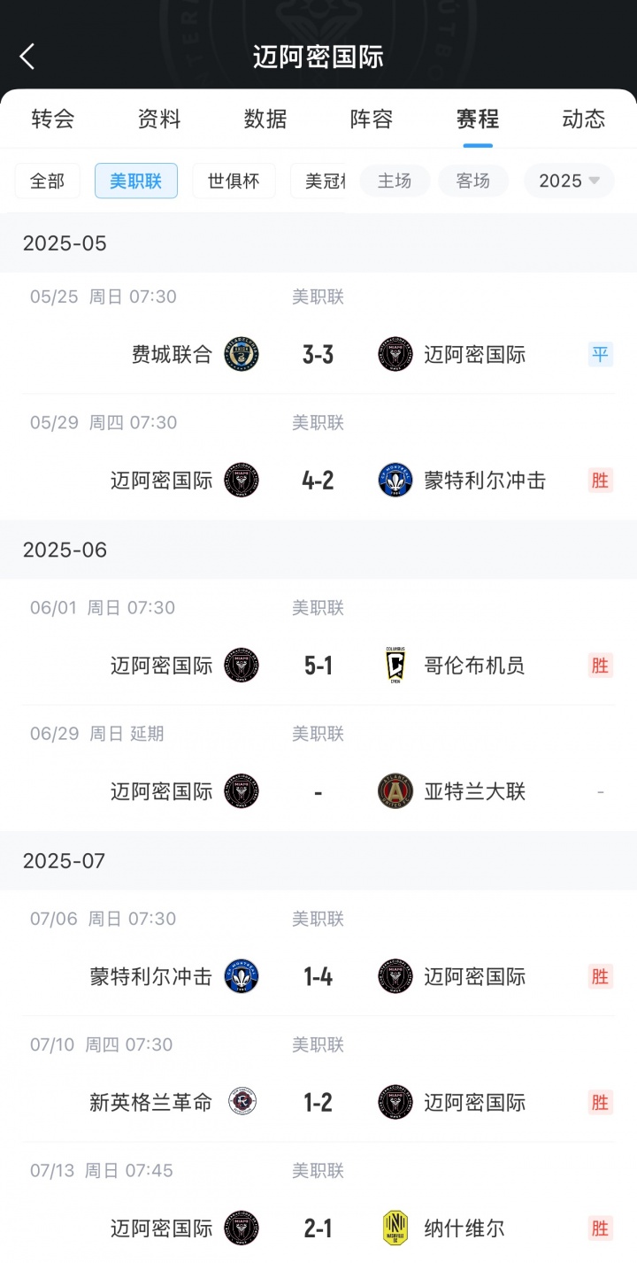 梅西率队5连胜猛猛追分😤迈阿密国际少赛3场落后东部第一5分