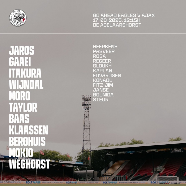 阿贾克斯公布了此役的首发名单,新援中卫板仓滉在列,此役将是他在阿贾克斯的首秀。